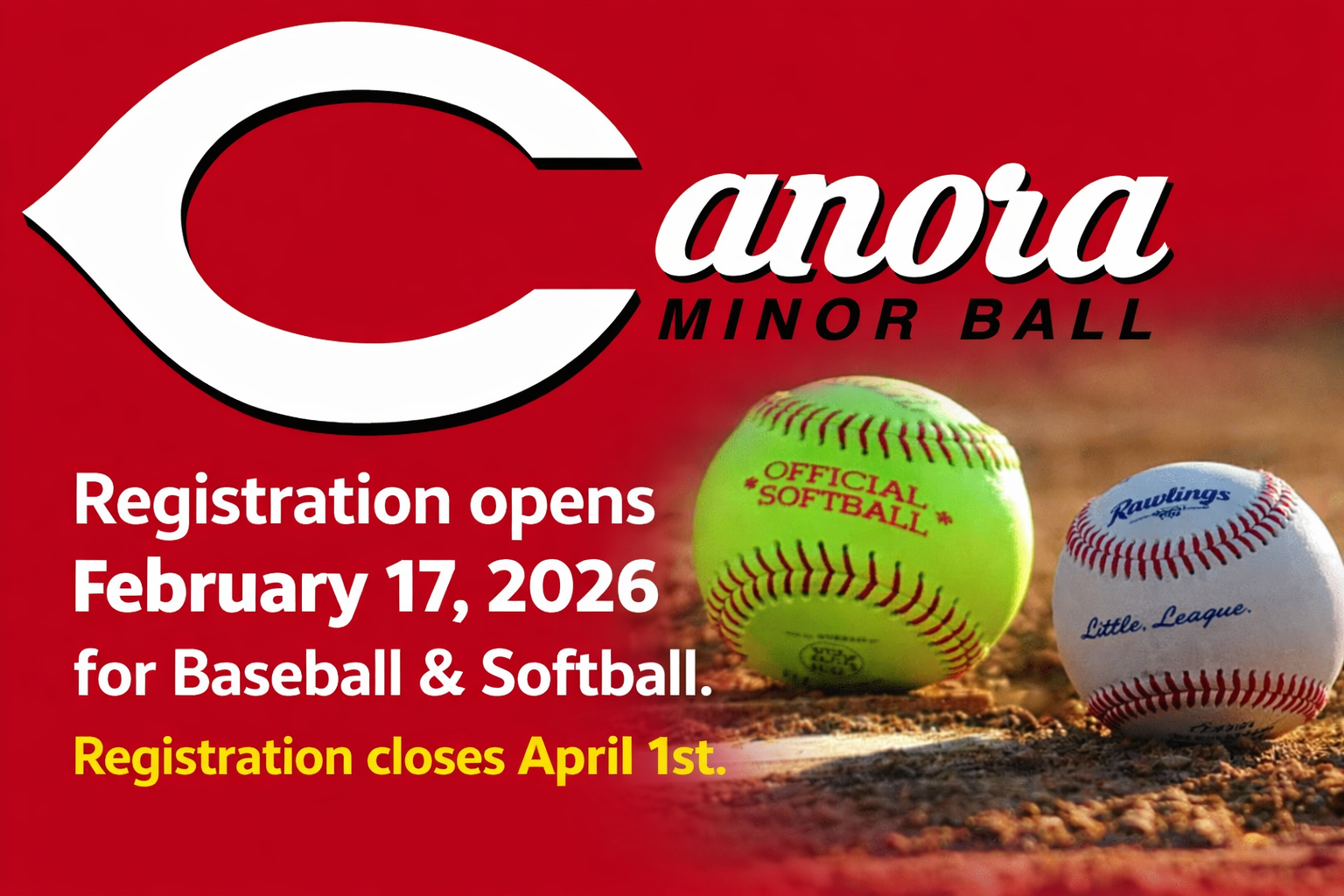 Baseball & Softball Registration Opens February 17, 2026 Register early!